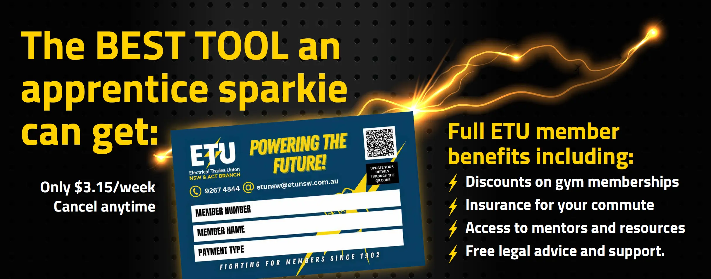 As an apprentice, you can join the ETU for just $3.15 a week.